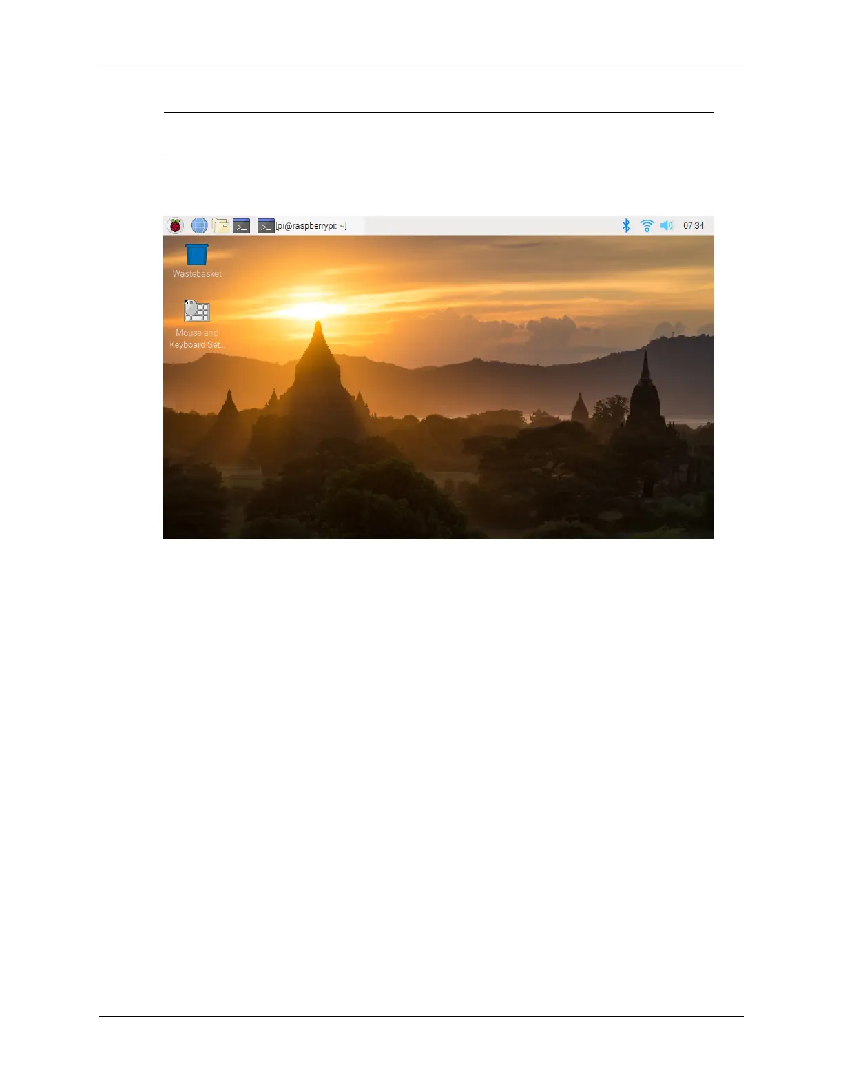 4. Use the power adapter to power the Raspberry Pi. After a few seconds, the Raspberry Pi OS desktop will be