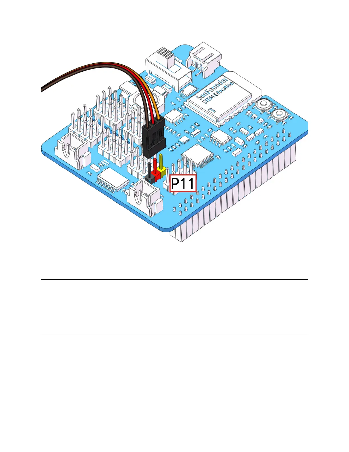 • Before assembling each servo, you need to plug the servo cable into P11 and turn on the power to set its angle
