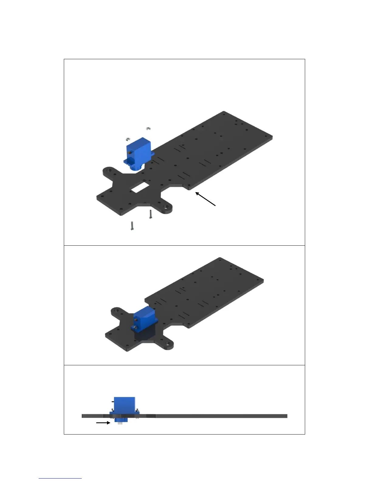 a) Connect the servo to the acrylic plate below with two M2*10 screws and M2