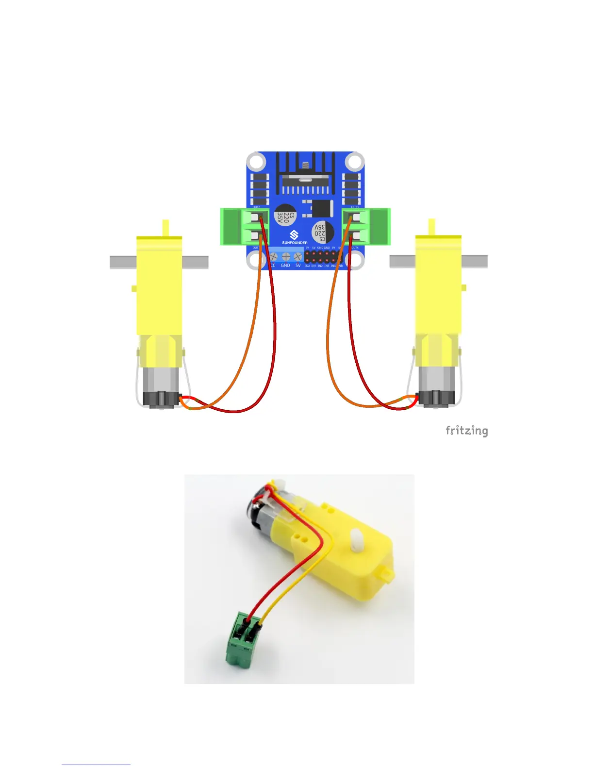 Note: It doesn't matter how to wire the motors. After all the assembly is done, if the