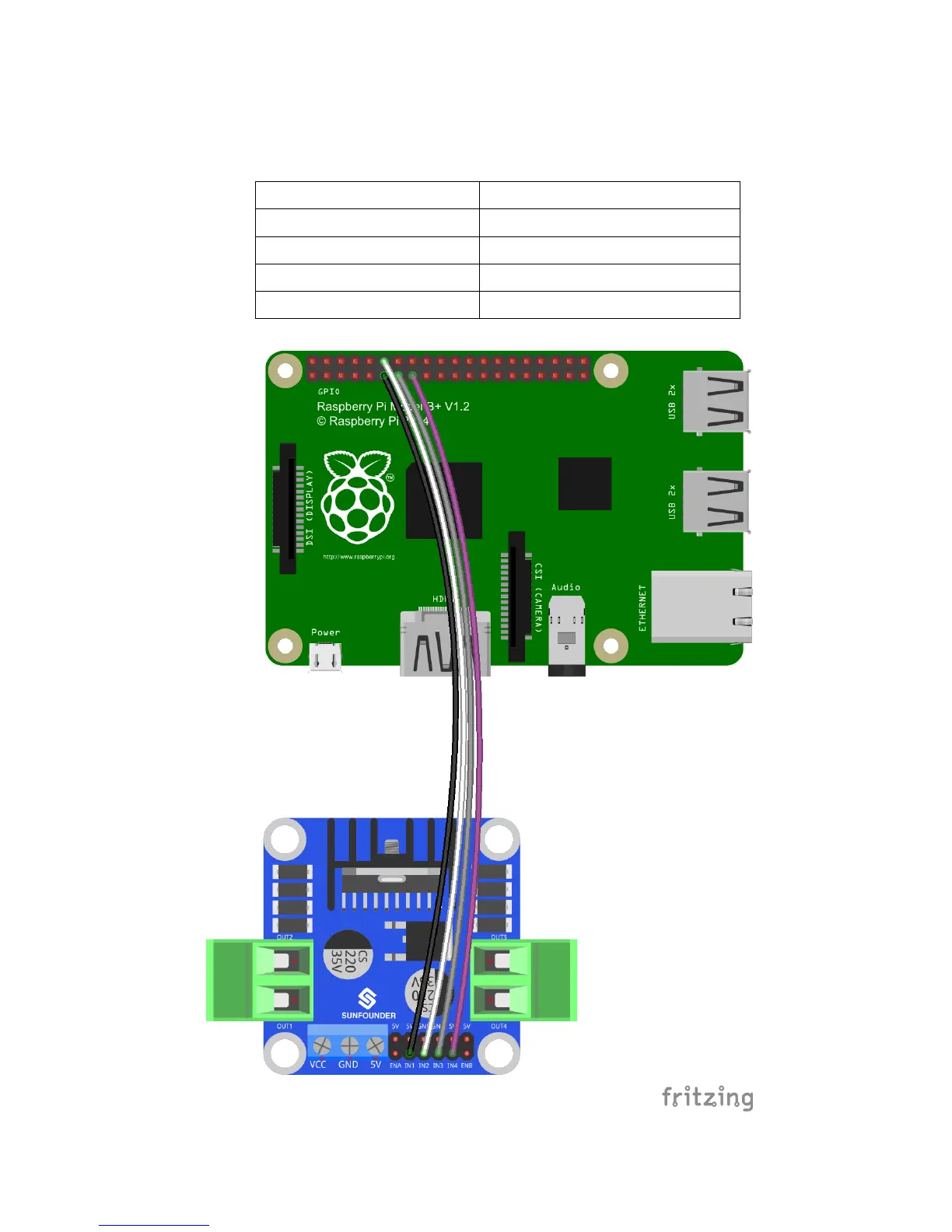 Step 2: Connect the motor driver with the Raspberry Pi GPIO port based on the