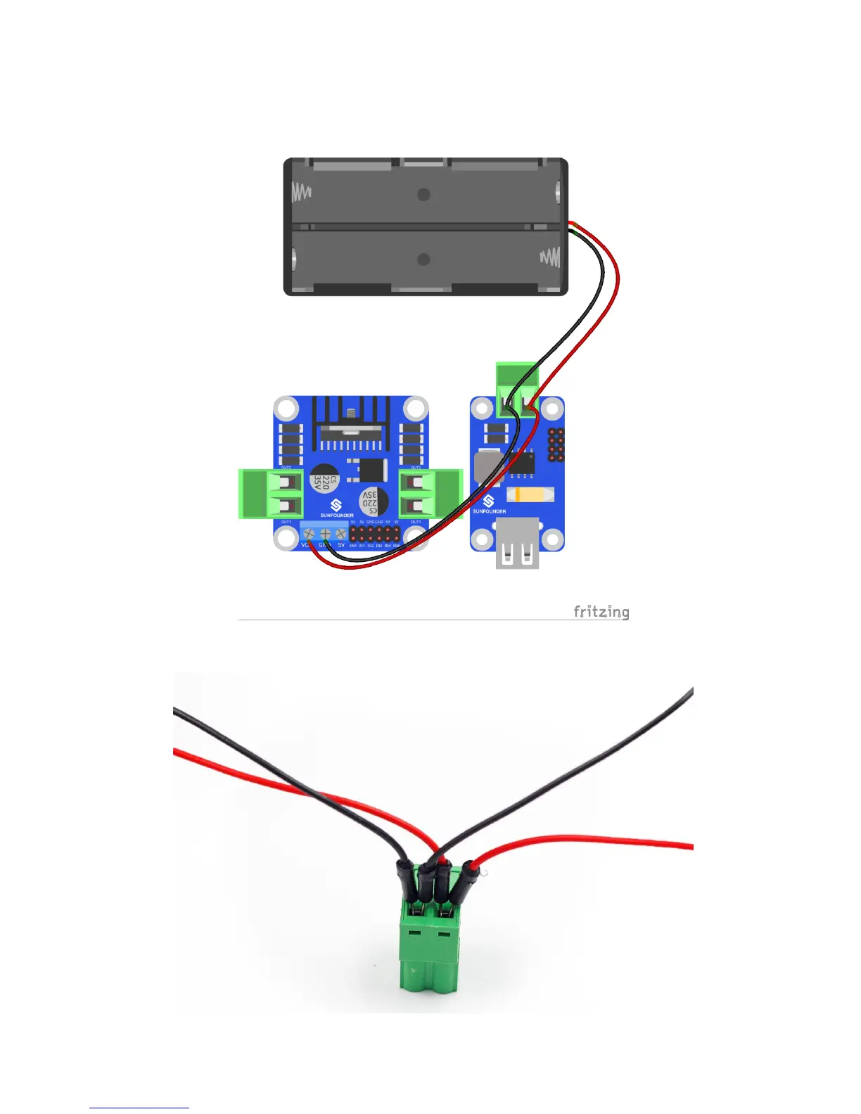 Step 7: Connect the battery holder with the step-down DC-DC converter module