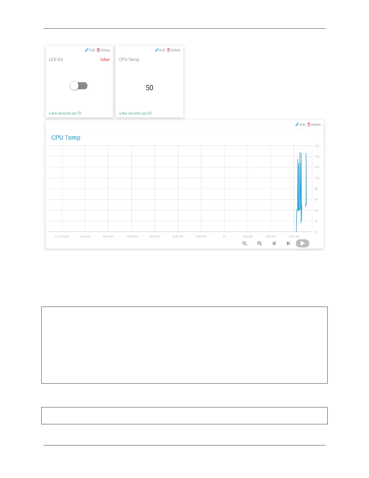 Once added, you can use the Switch widget to control the LED; the value of the photoresistor on the Text widget will