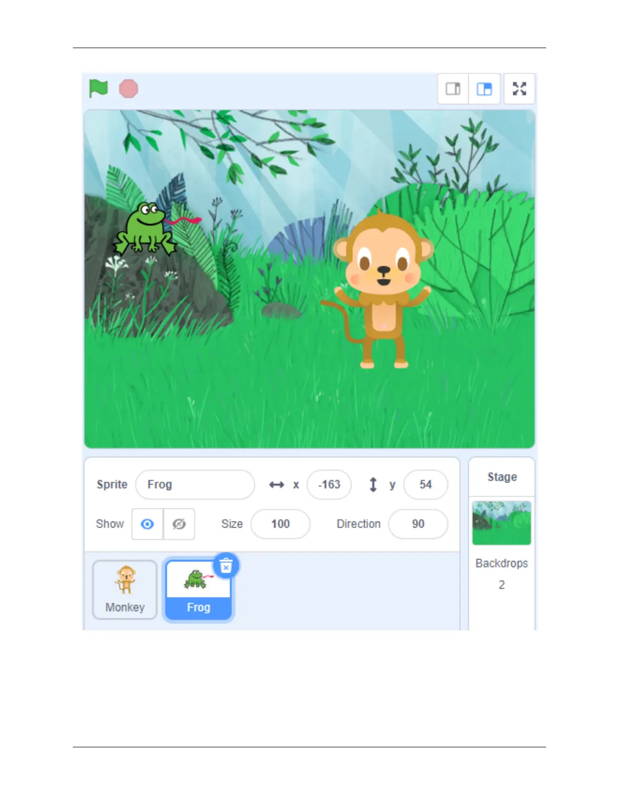 Click on the Frog sprite, add a 3 second delay block (wait for Harley to finish speaking), and then it speaks.