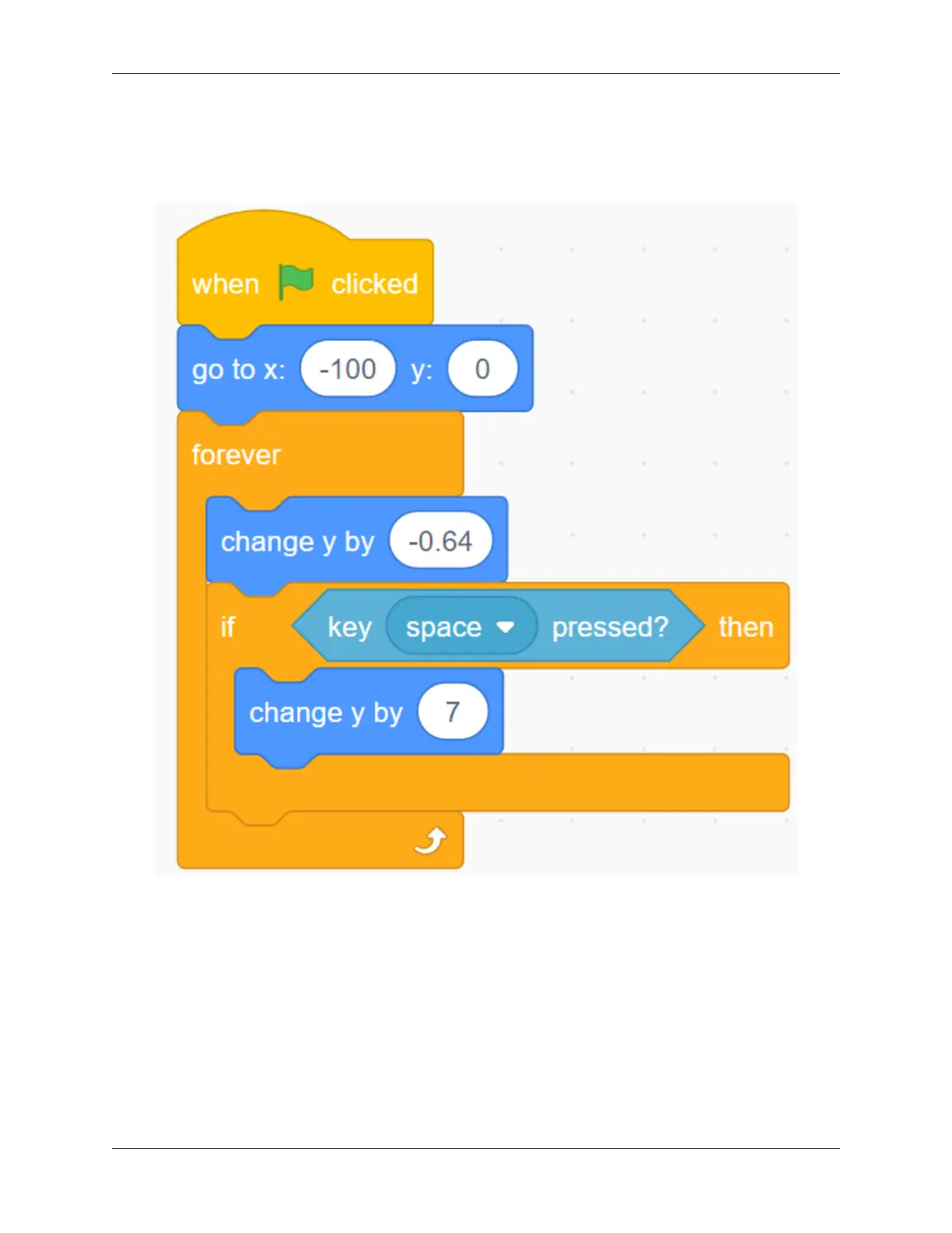 press the space button, the y coordinate of Parrot will increase.