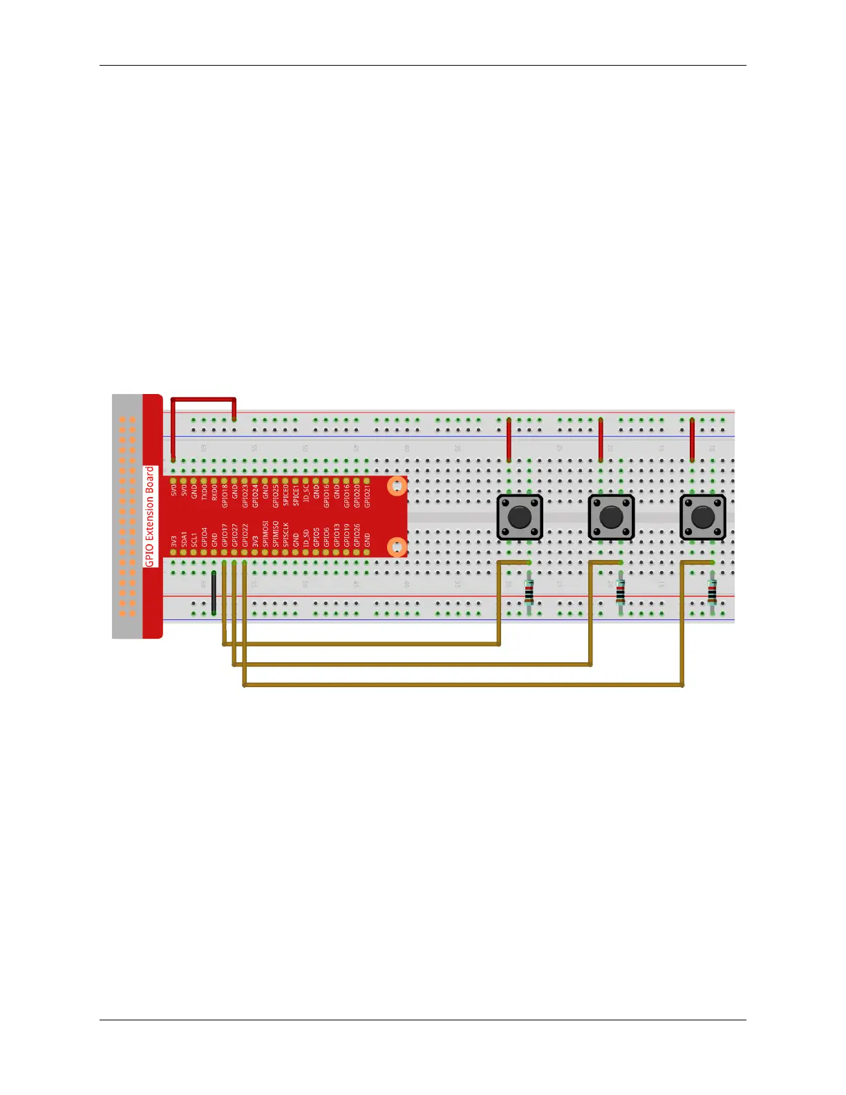 Insert the T-type GPIO extension board into the breadboard and build the circuit as shown below.