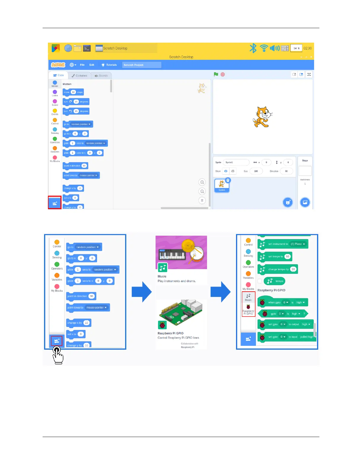 Tap Add icon at lower left corner and choose Music and Raspberry Pi GPIO to add two functions on the left of the