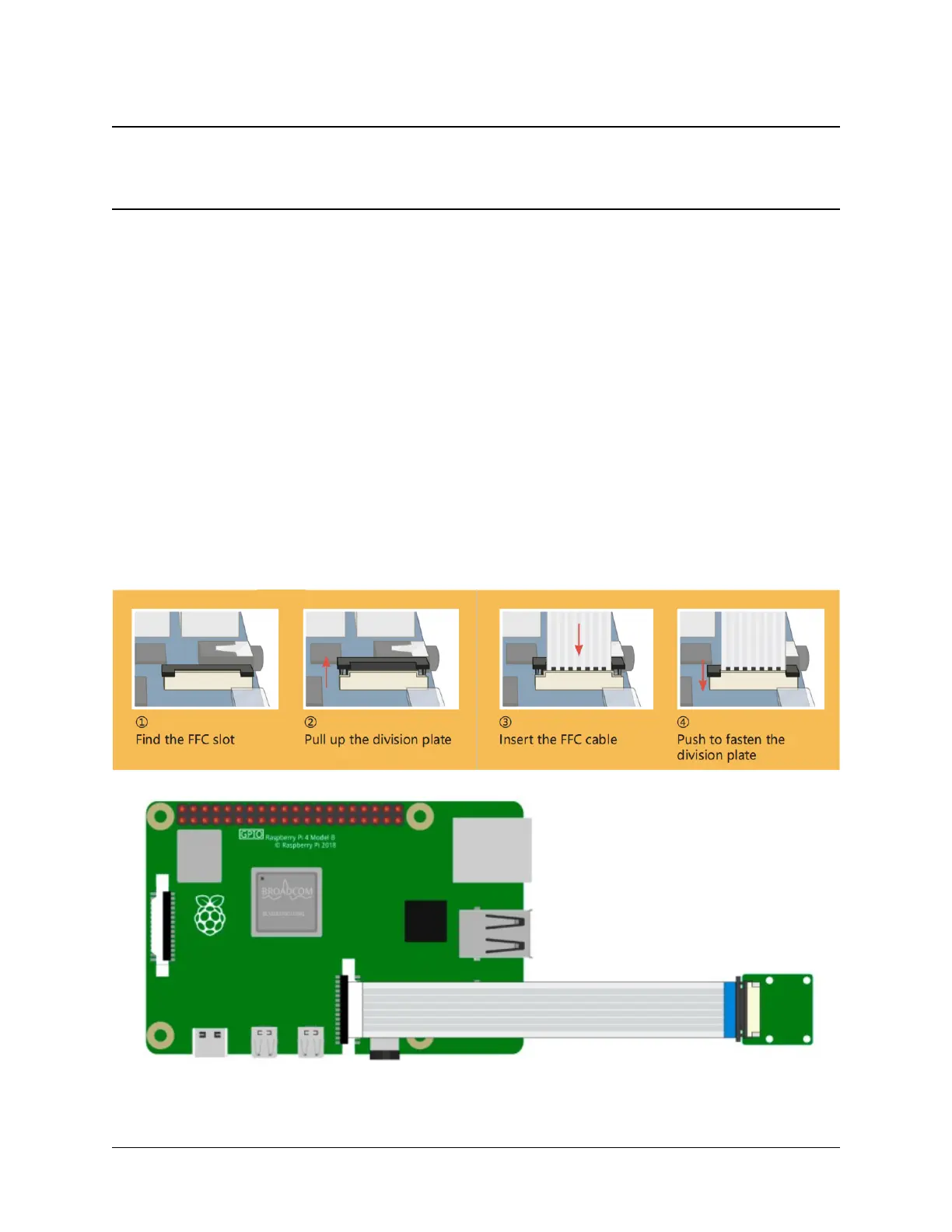 until the fixing switch is partially pulled out. Insert the FFC cable into the plastic connector in the direction shown and