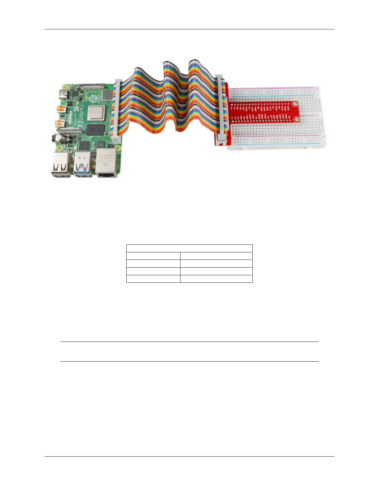 Connect the 40 pins of the Raspberry Pi to a breadboard according to the diagram below.