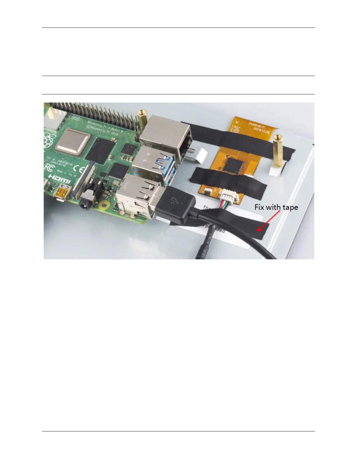 Connect the USB port of the Raspberry Pi and the screen with a 4-pin USB cable. To prevent the cable from falling