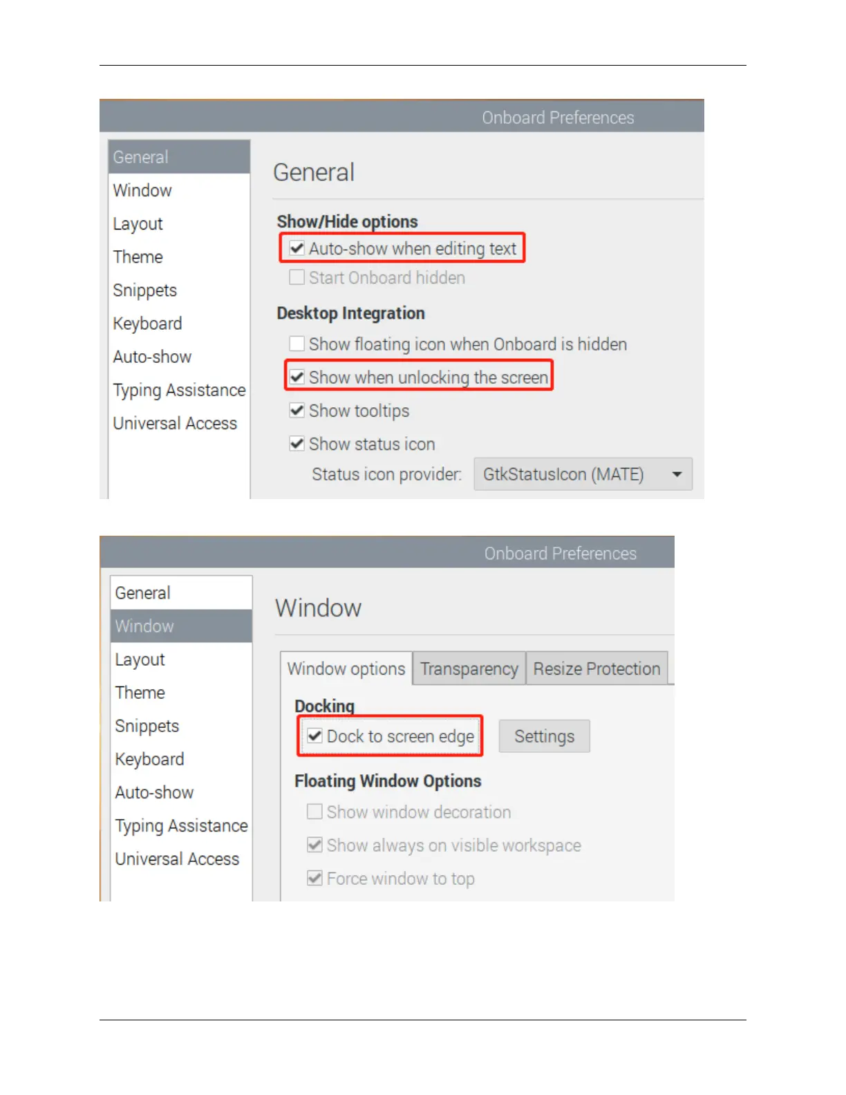 In the Window option, check Dock to screen edge.