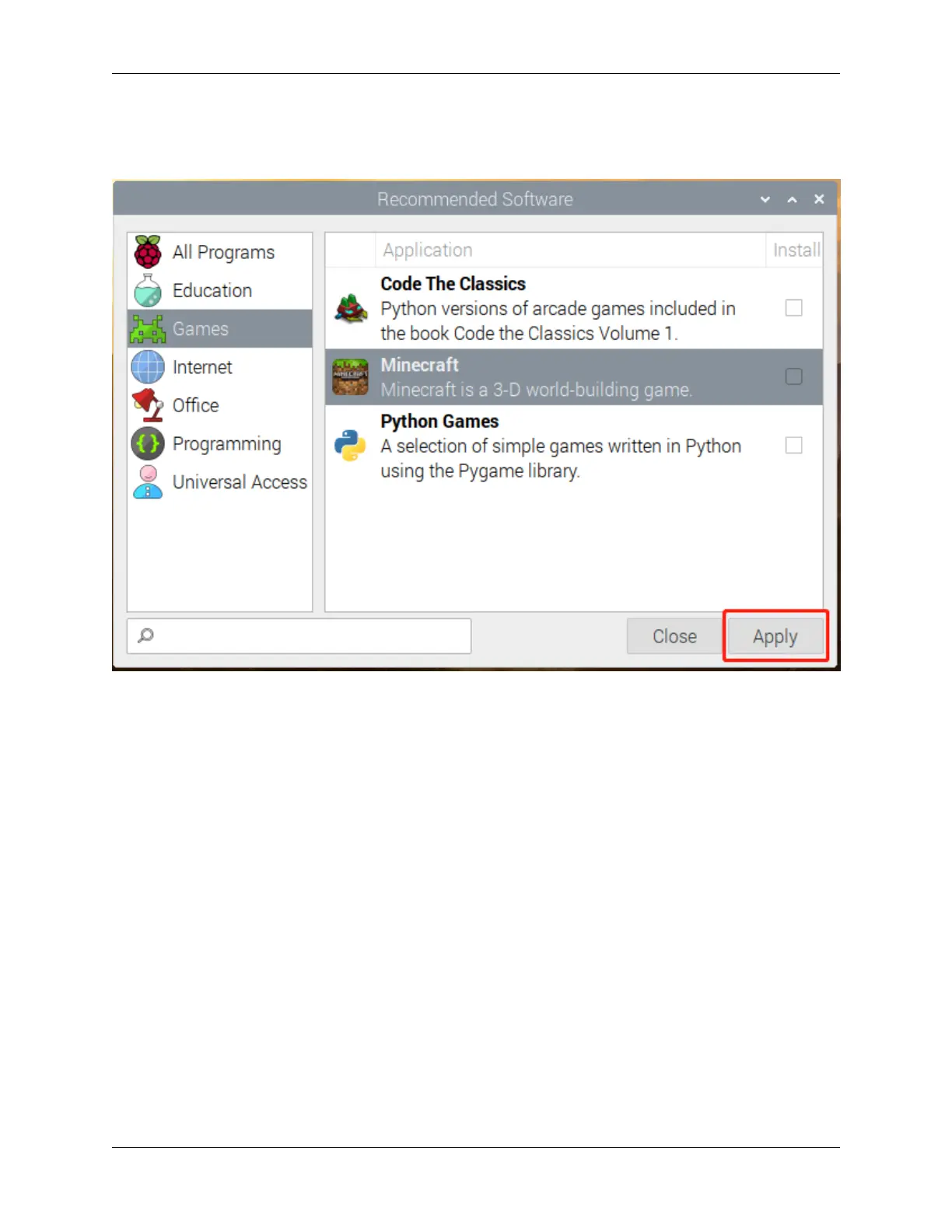 Click Preferences -> Recommended Software -> Games to install games on this screen.