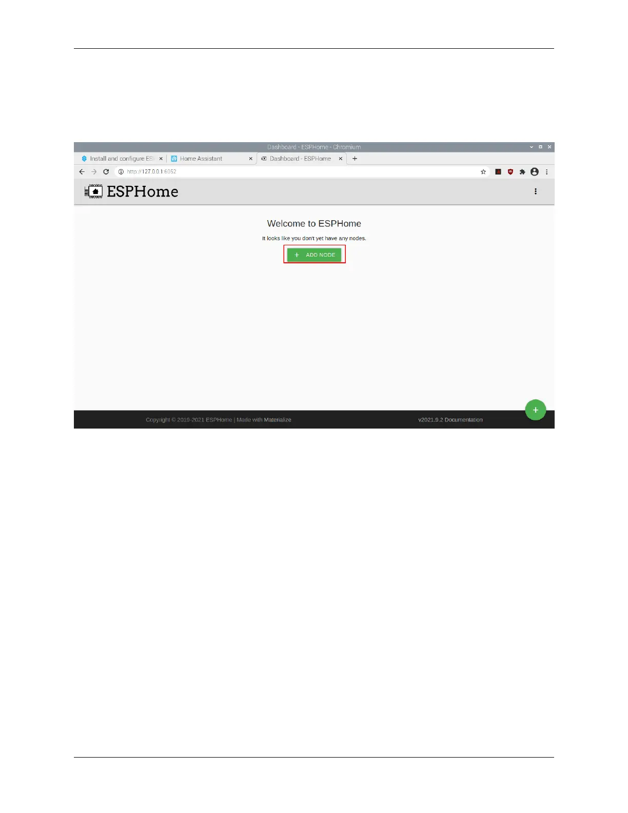 1. Open a browser and enter ESPHome Dashboard through http://localhost:6052 or http://X.X.X.X:6052 (replace