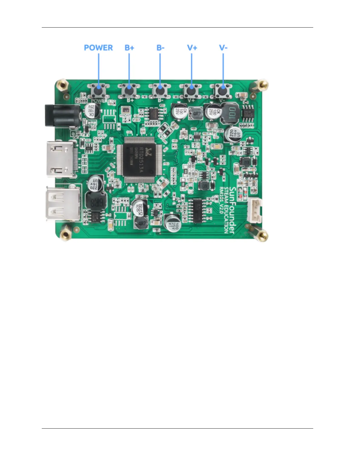 On one side of the main board there are ports of HDMI input, 12V power input, and 5V/3A USB power output. Also