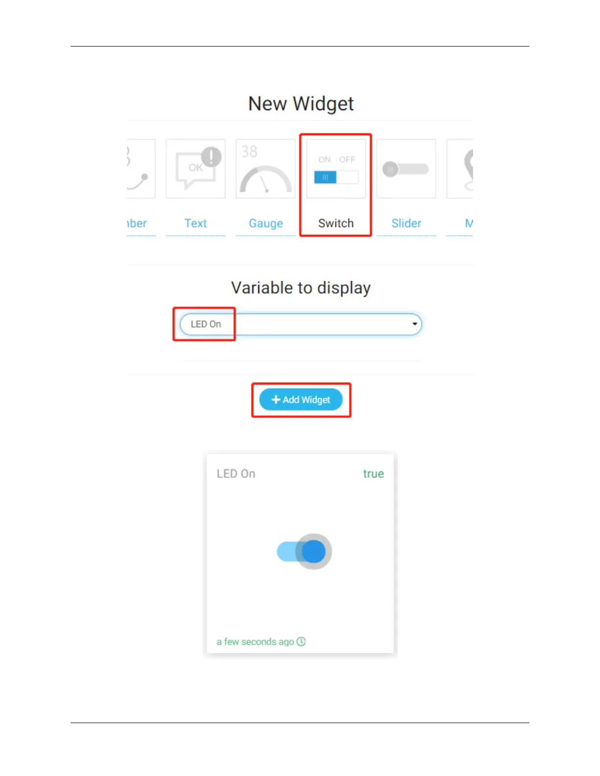 Once added, you can use the Switch widget to control the relay.