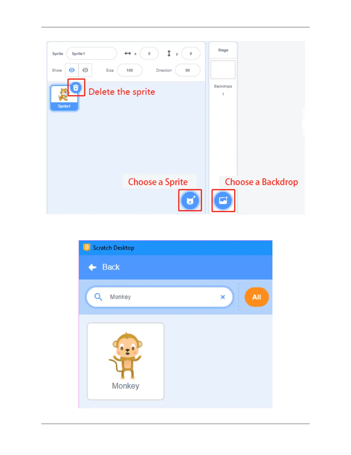 First the current sprite, and then click the Choose a Sprite button to add the sprite.