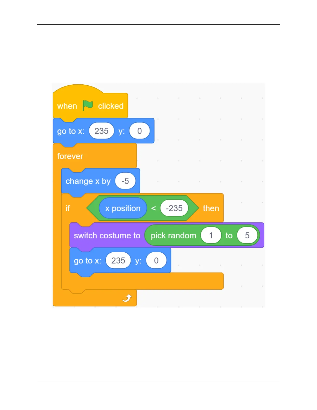 Set the initial position and movement of the Trees sprite so that it can reach the far left from the far right of the stage.