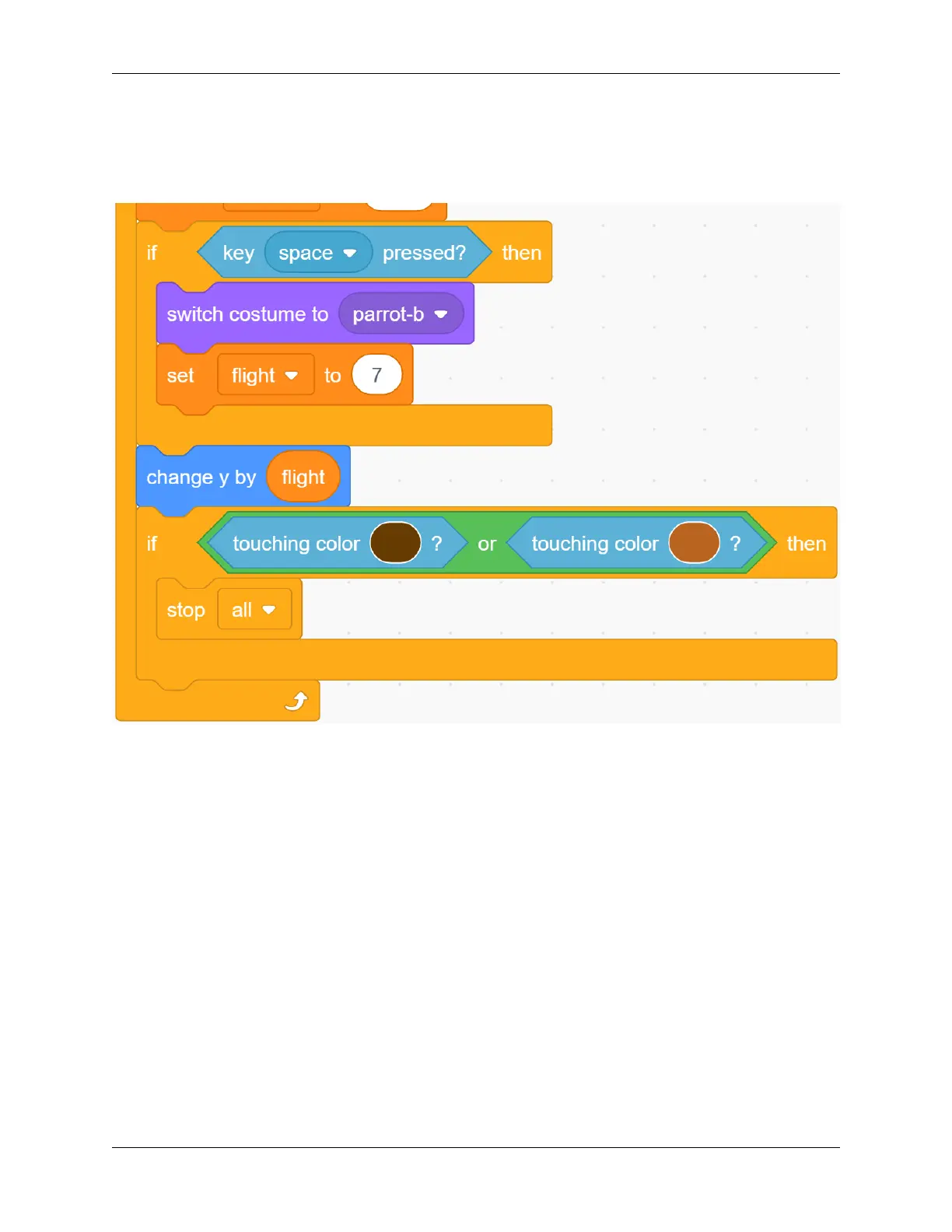 When the Parrot sprite encounters a tree or falls to the ground during the flight, we judge the game is over, and then