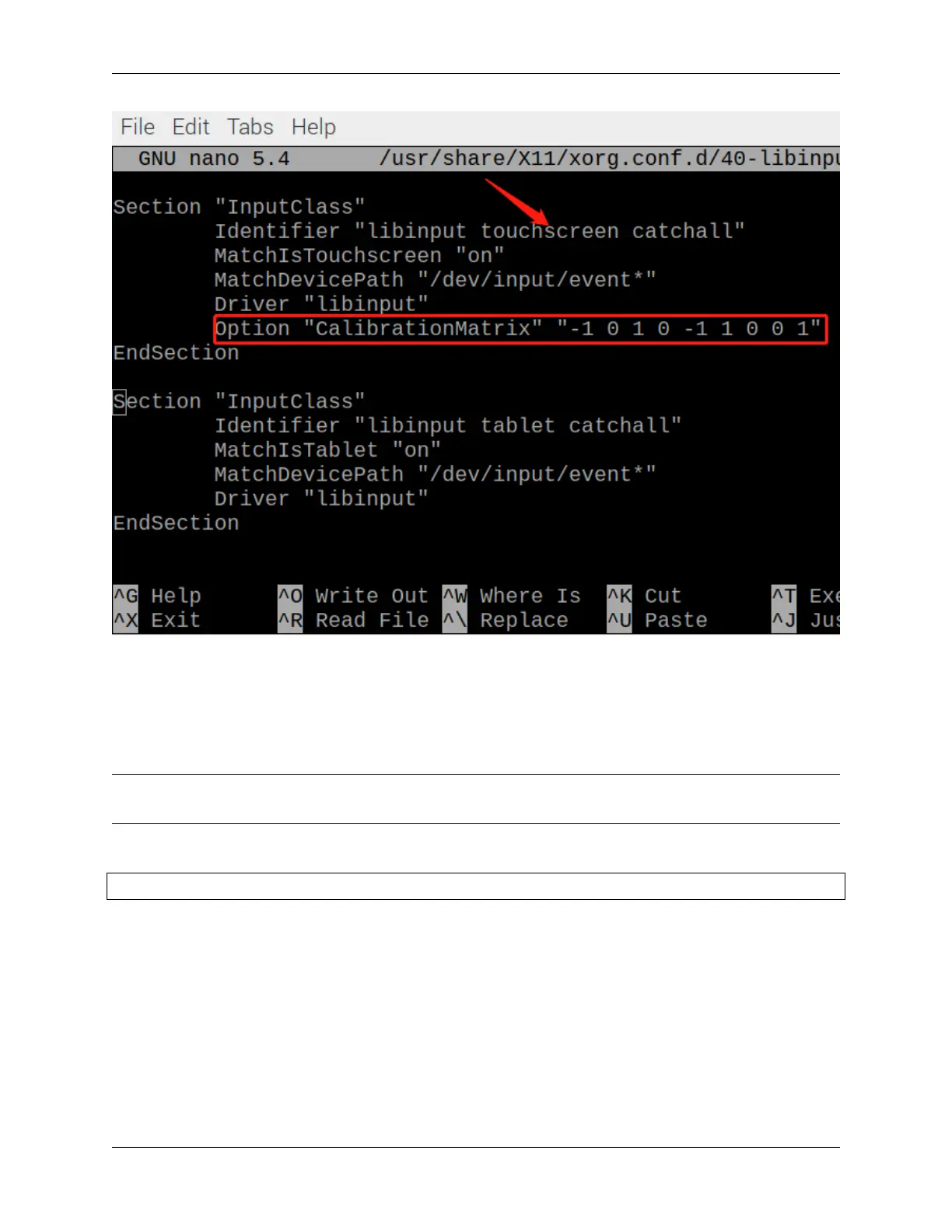 • 0 degrees: Option "CalibrationMatrix" "1 0 0 0 1 0 0 0 1"