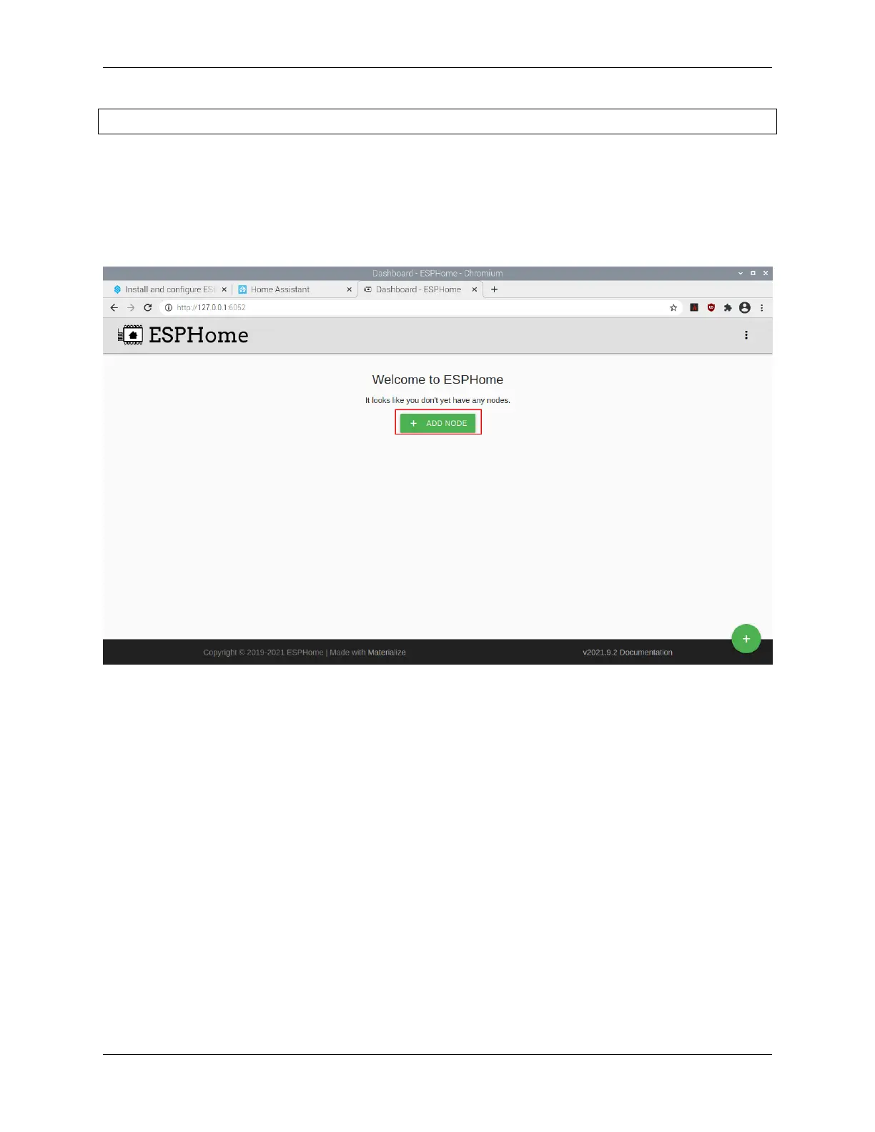1. Open a browser and enter ESPHome Dashboard through http://localhost:6052 or http://X.X.X.X:6052 (replace