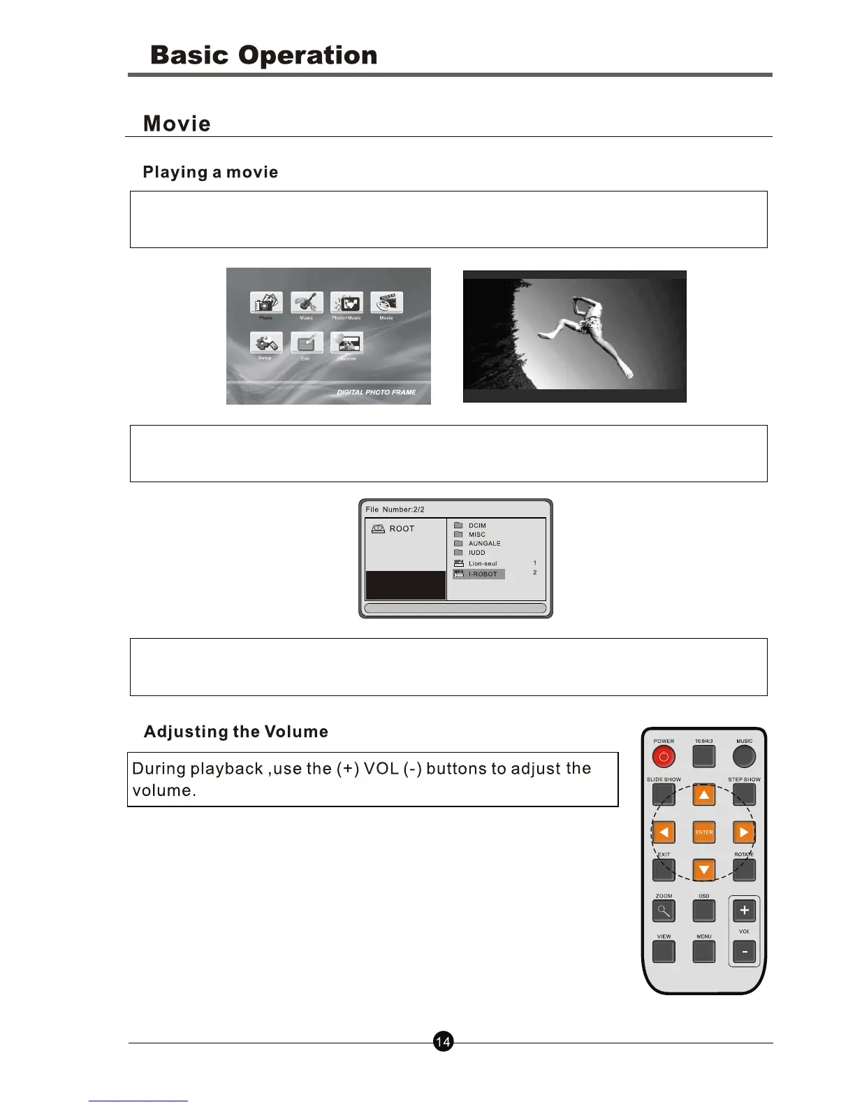 Step 1. Select MOVIE icon in the main menu and press ENTER button to