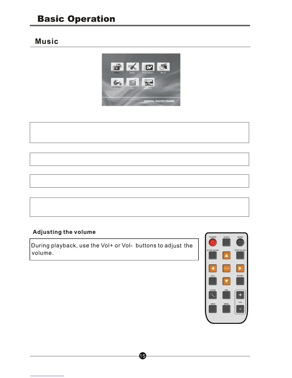 Step 1. Select MUSIC icon in the main menu and press ENTER button to