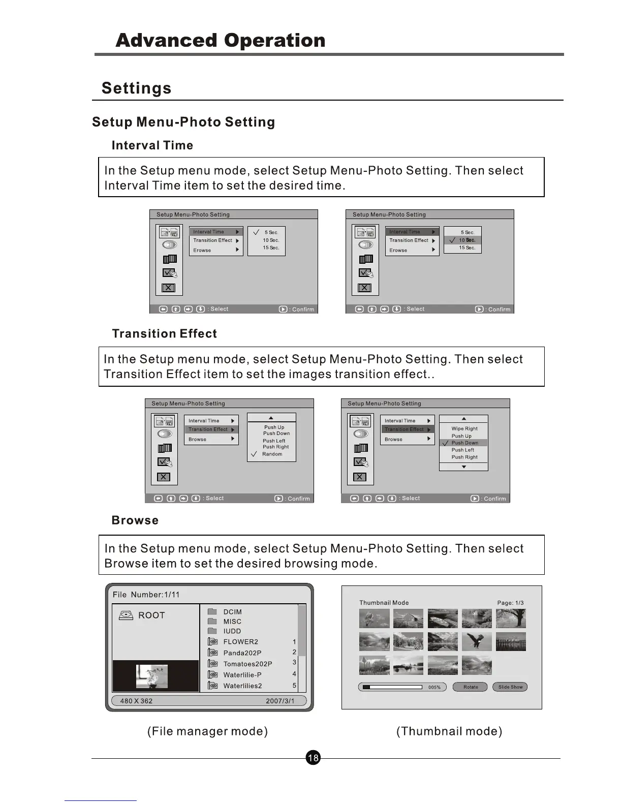 Note: The product will display the images stored in the external devices first