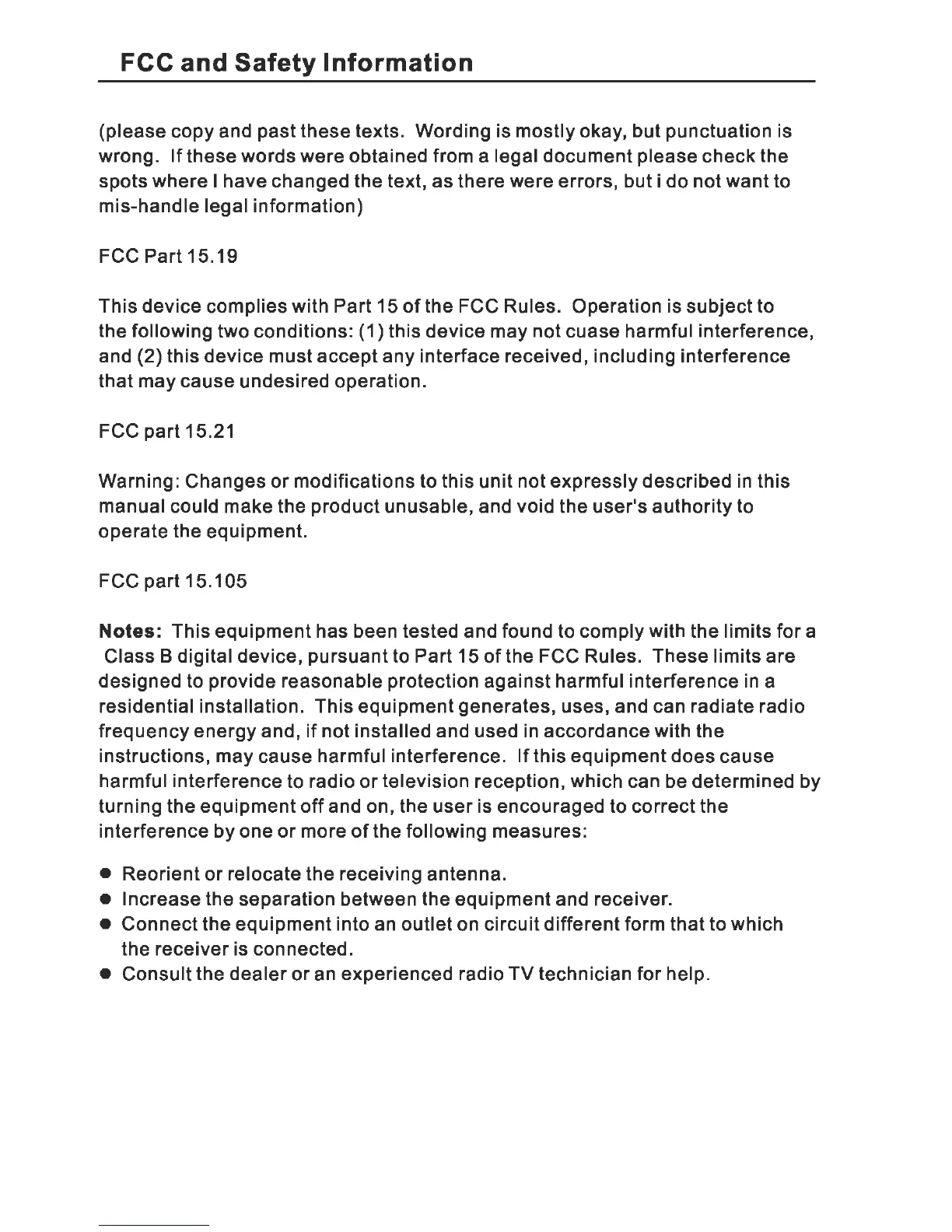 Sungale CA700 - FCC and Safety Information; FCC Compliance Details