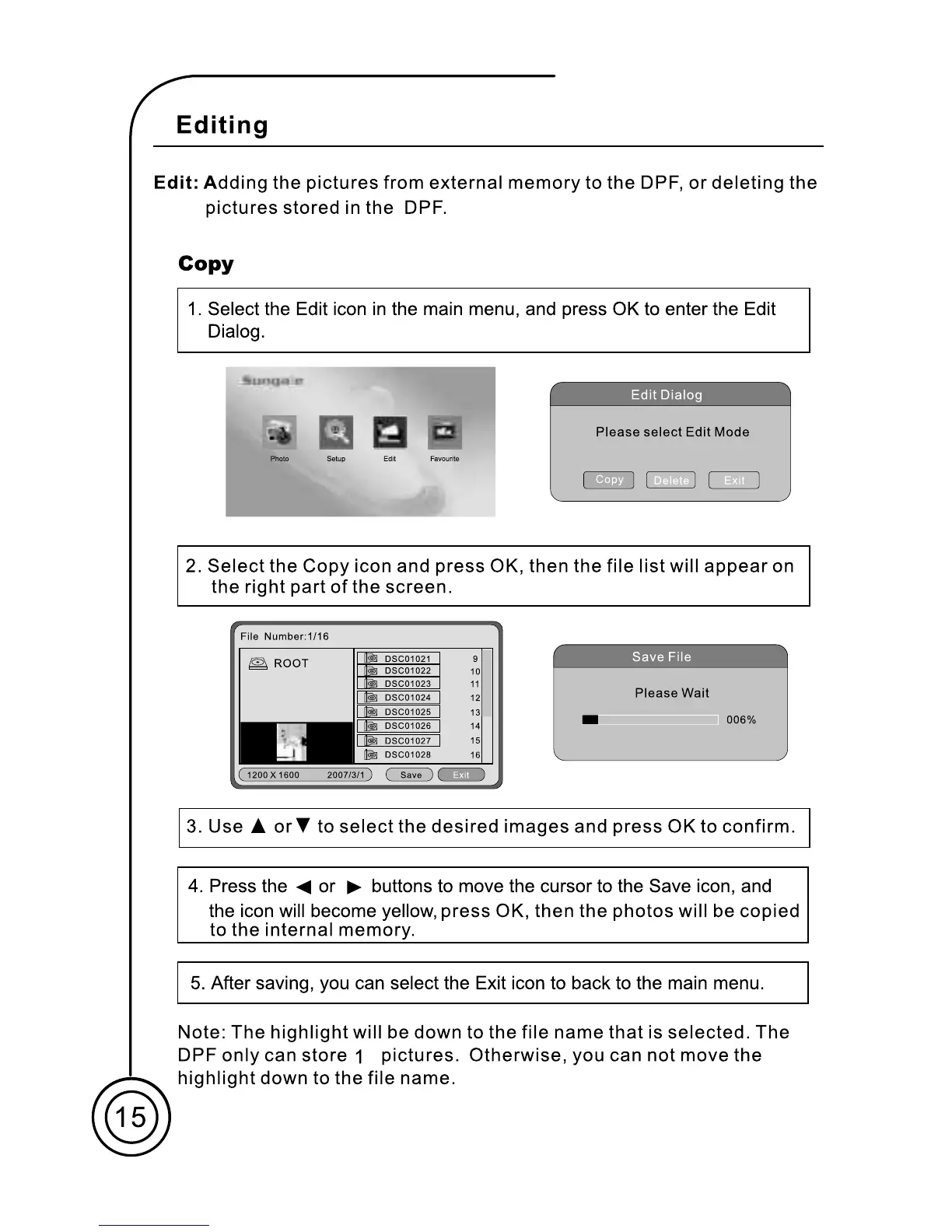 Sungale CD705 - Editing; Copy Pictures