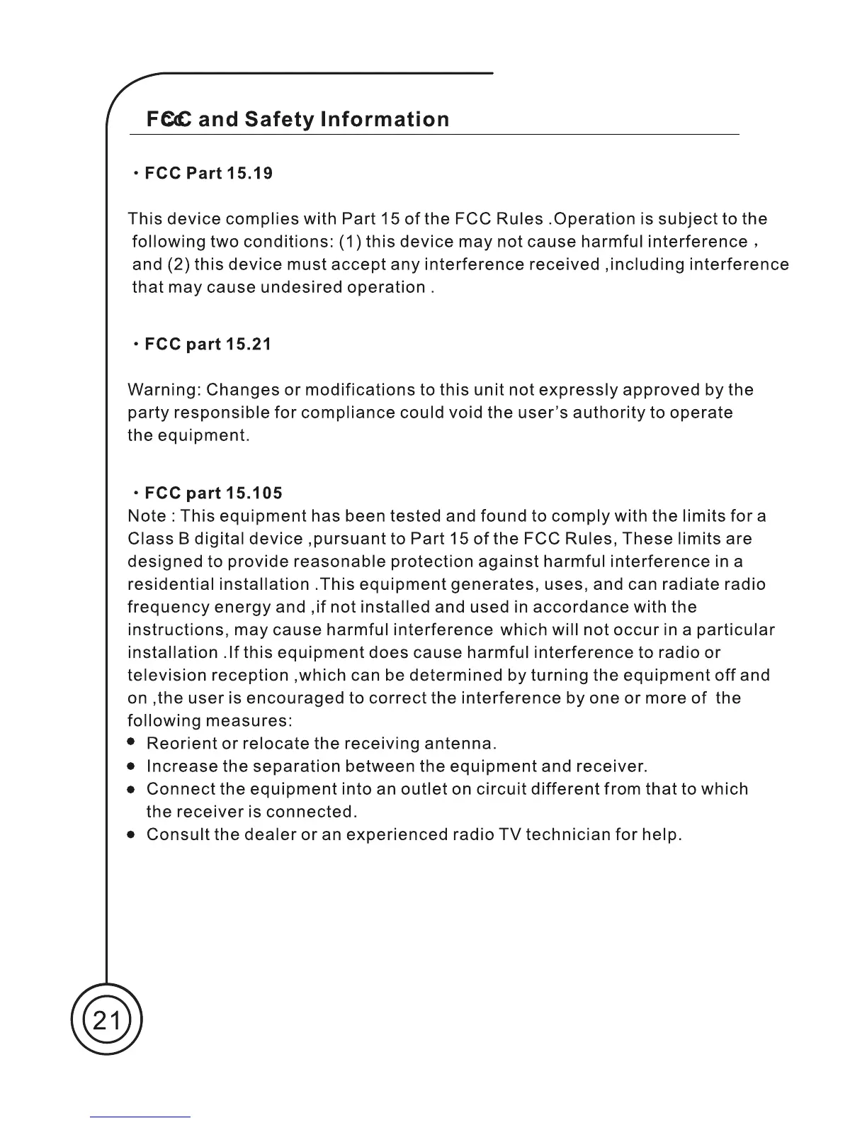 Sungale CD705 - FCC and Safety Information