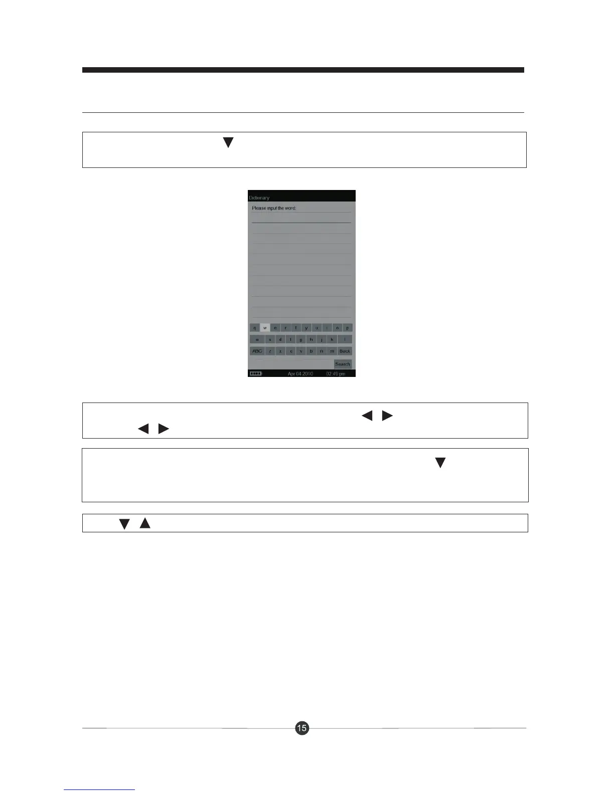 to “Search”, then press OK to search the word. The related word explanation will appear on