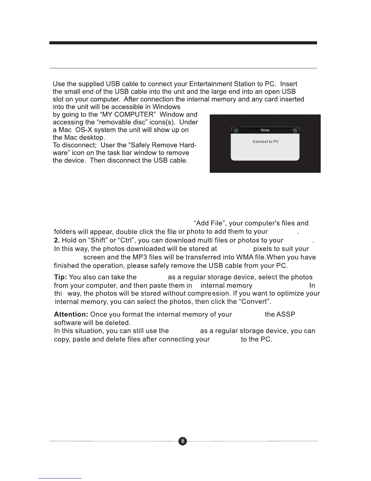 Sungale CD706A - PC Connection and File Transfer