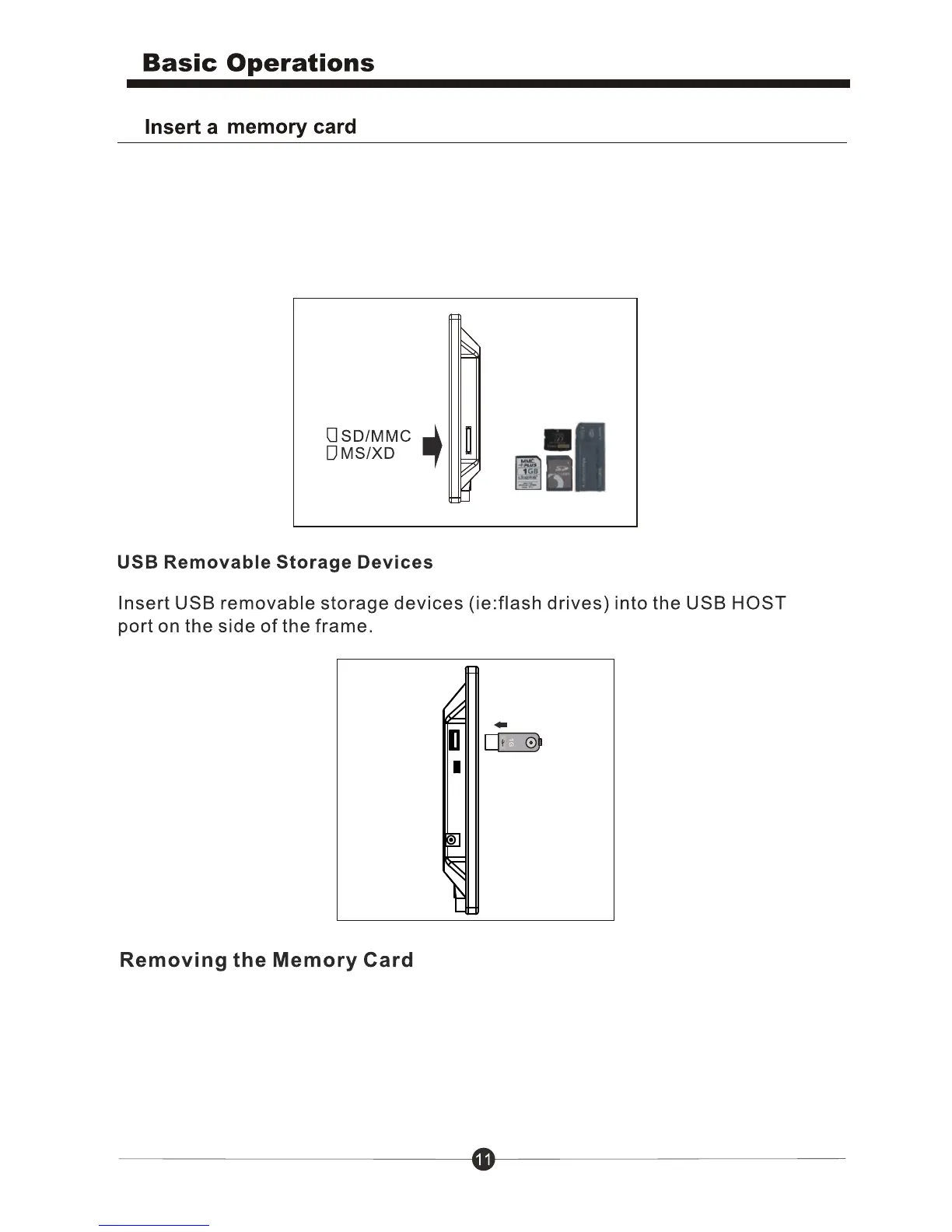 Sungale CD803 - Insert a Memory Card; USB Removable Storage Devices
