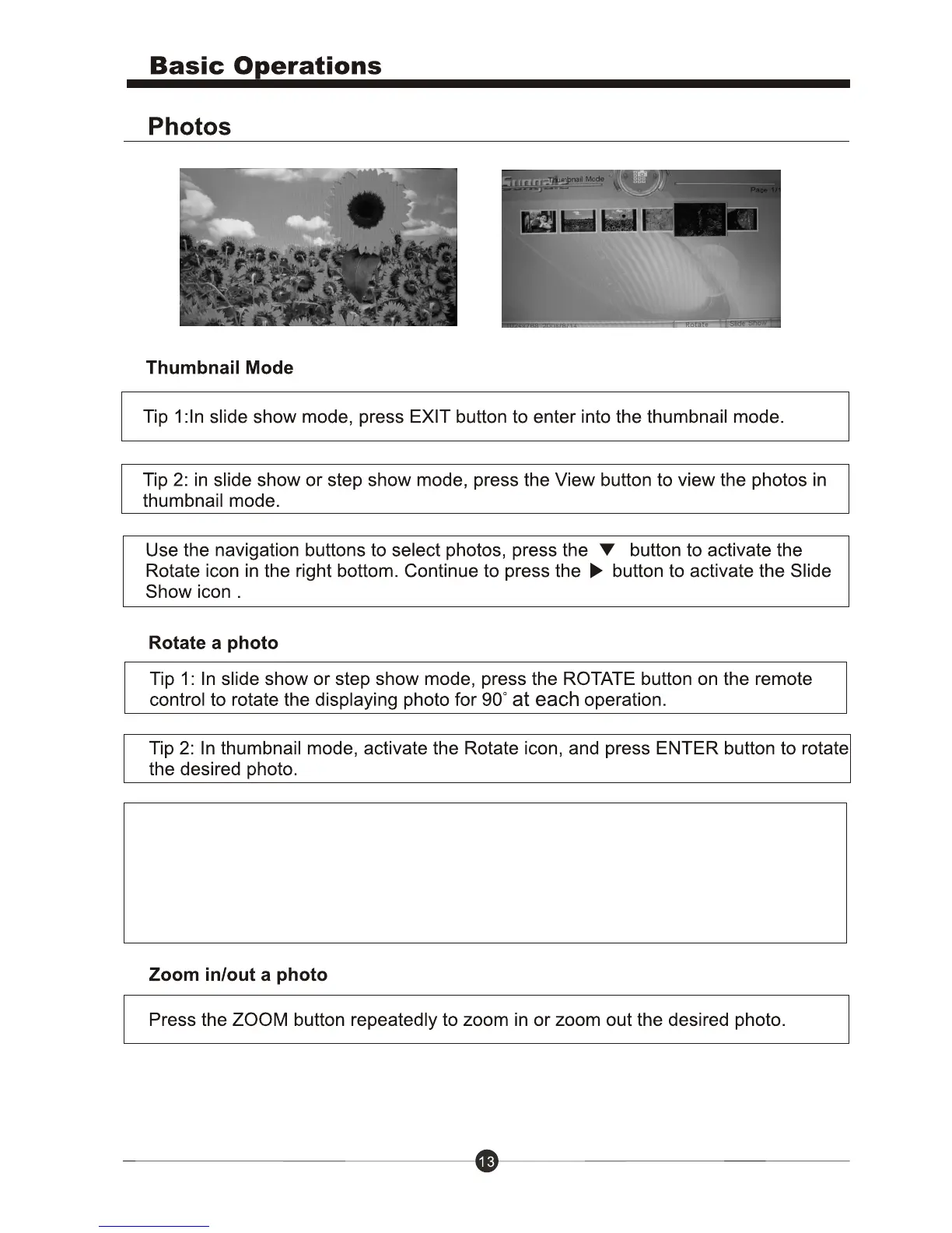 Note: When rotating a photo in thumbnail mode: