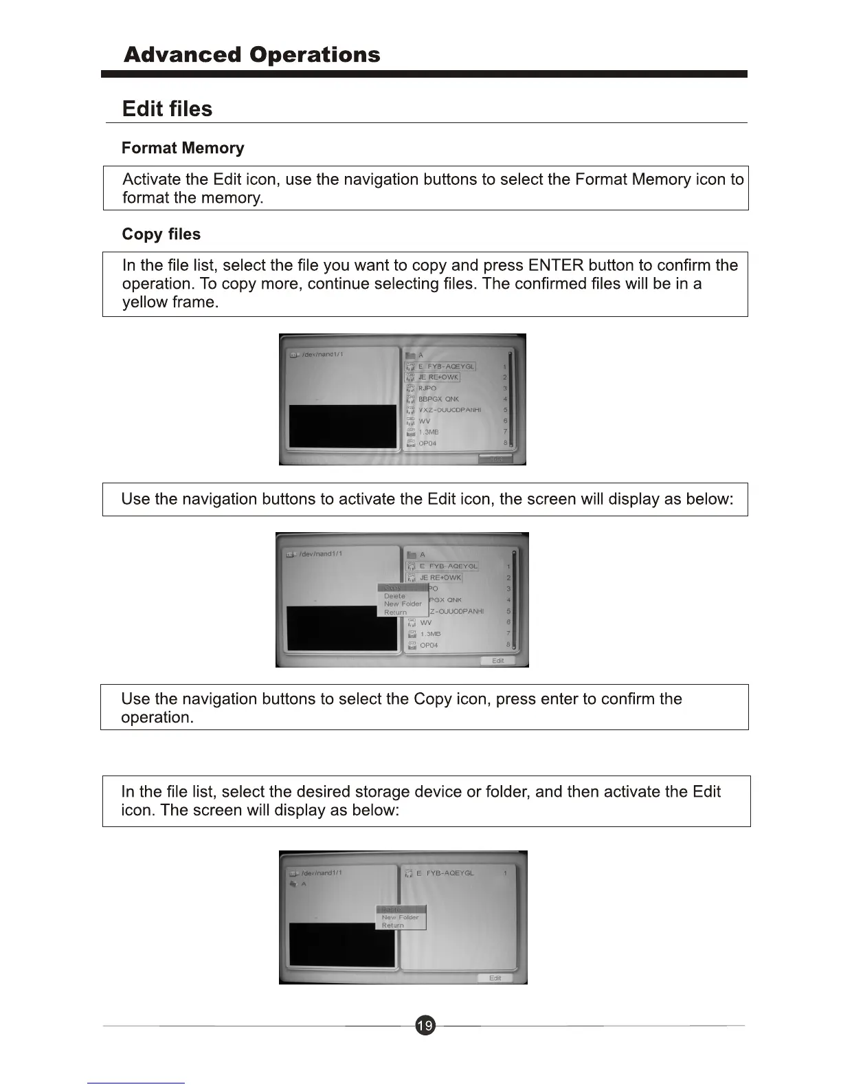 Sungale CD803 - Format Memory; Copy Files; Paste Files