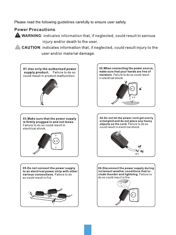 Sungale Cloud Frame - Safety Precautions; Power Precautions