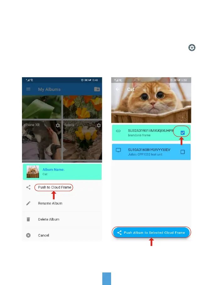 Select this linked frame then then tap "Push Album to selected Cloud Frame".