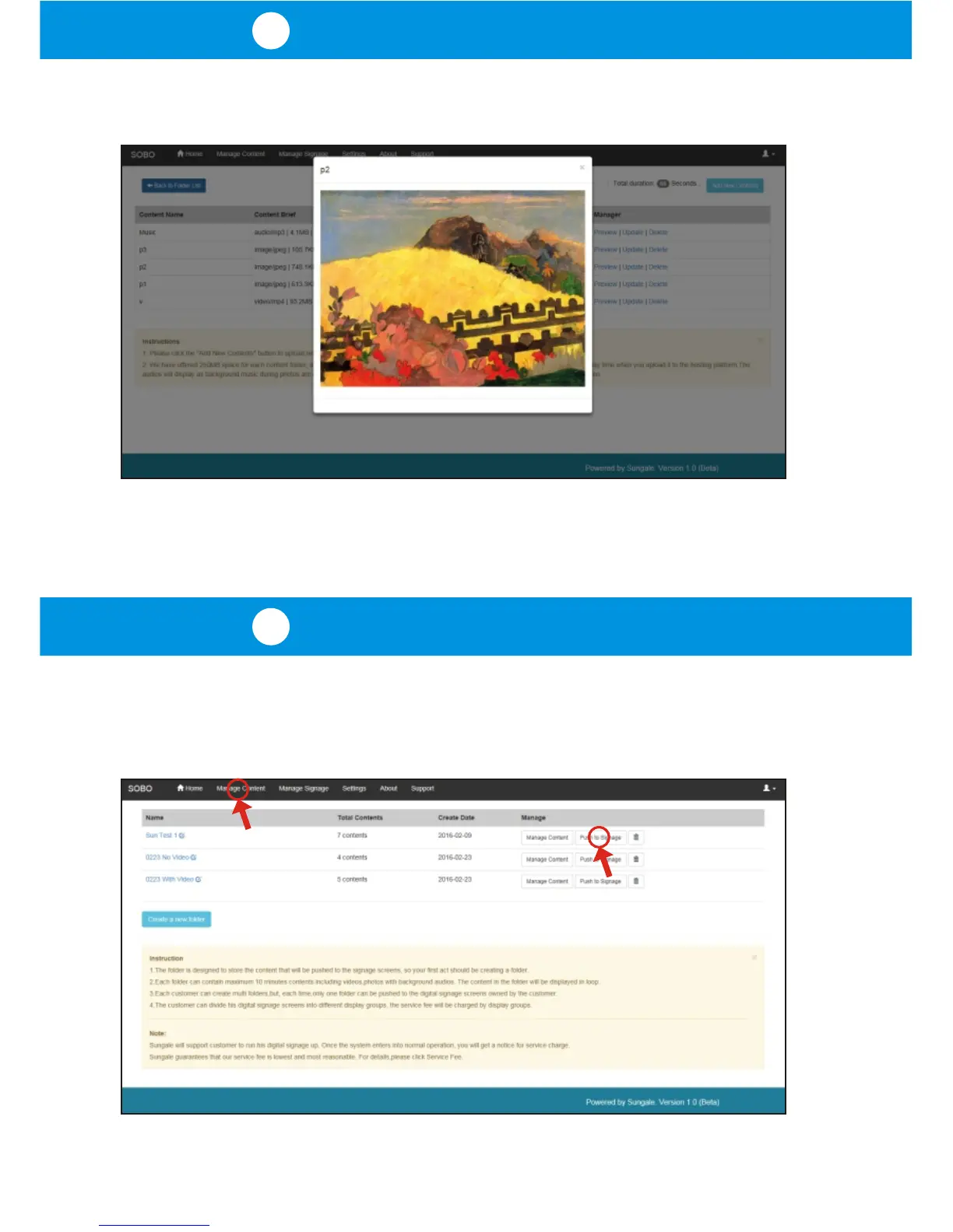 "Manage Content" tab in the top navigation bar to go back to the folder list, and
