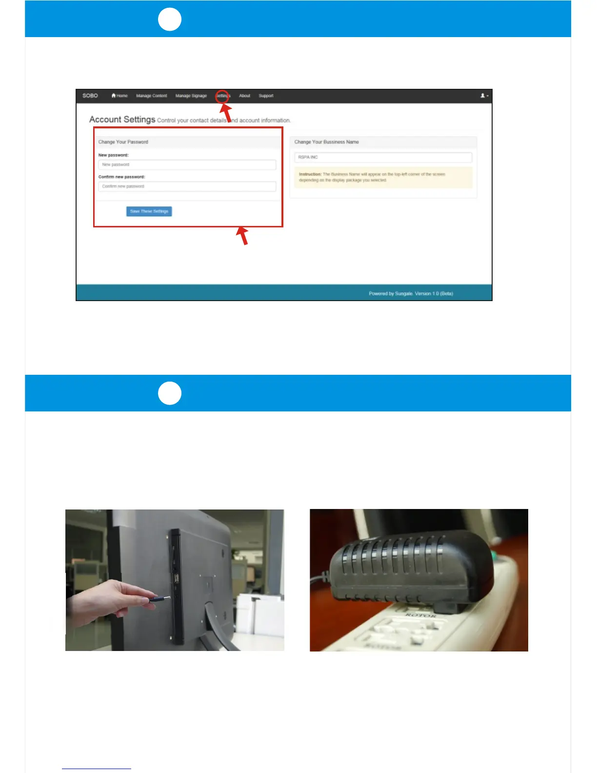 Sungale cpf1909 - Account and Device Setup; Update Account Information; Connect Power