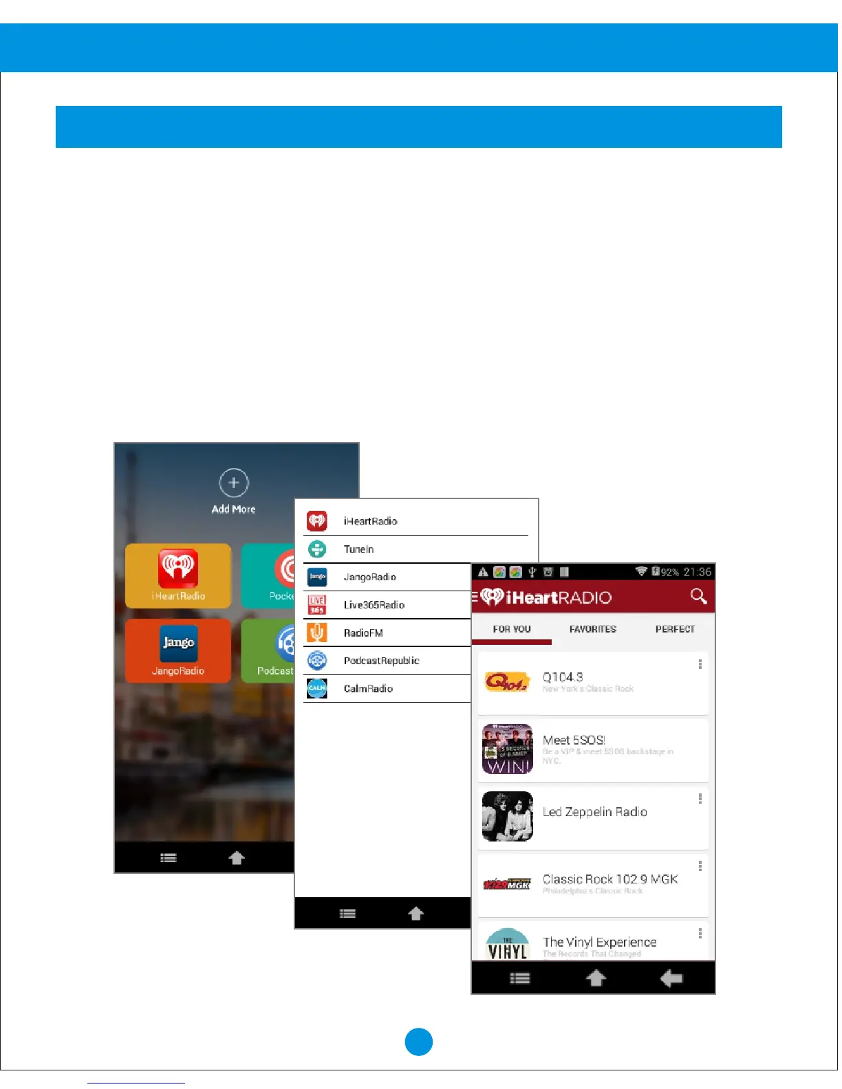 the radio app onto the device. After the initial setup, you may just touch the radio app on