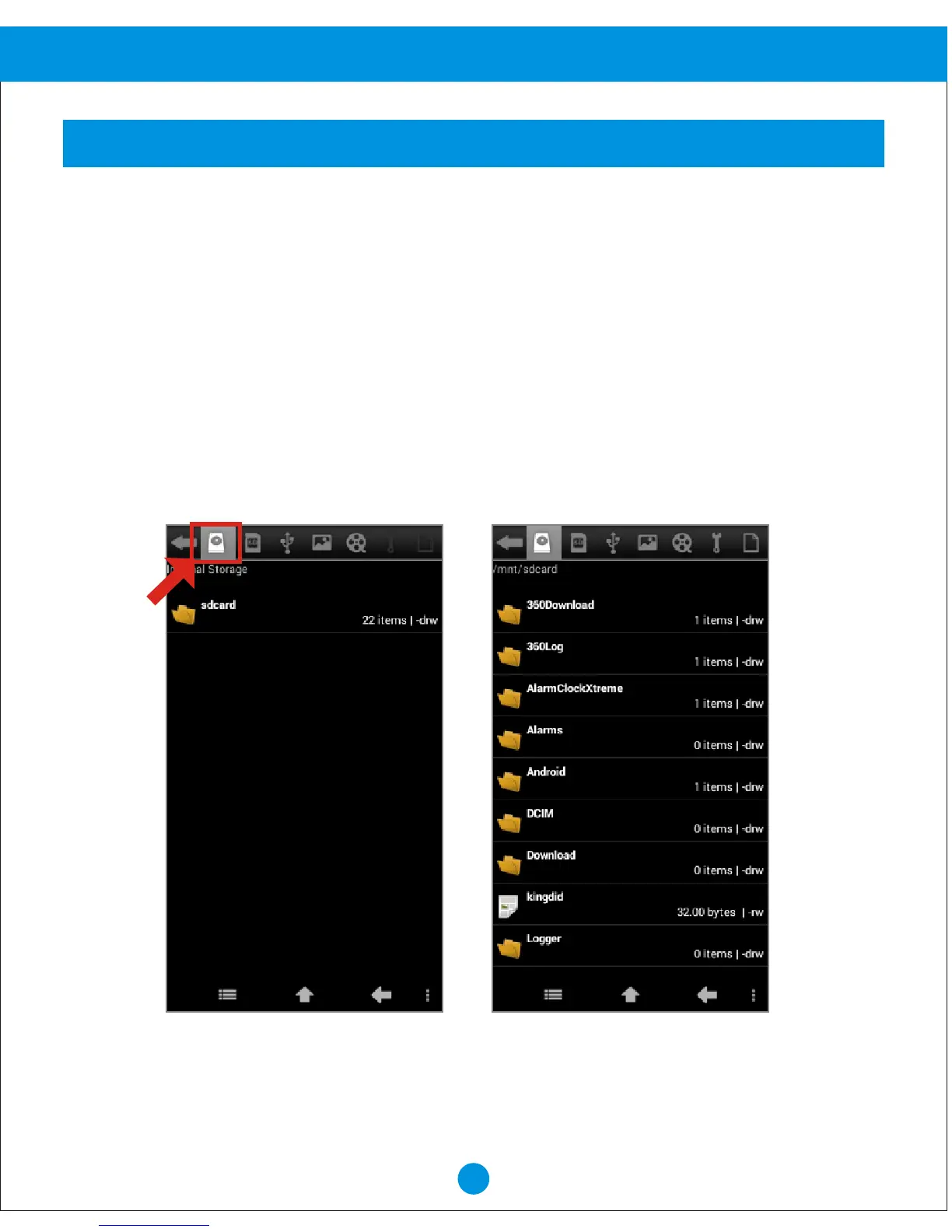 The second tab lists your external SD card contents. If you have connected a external