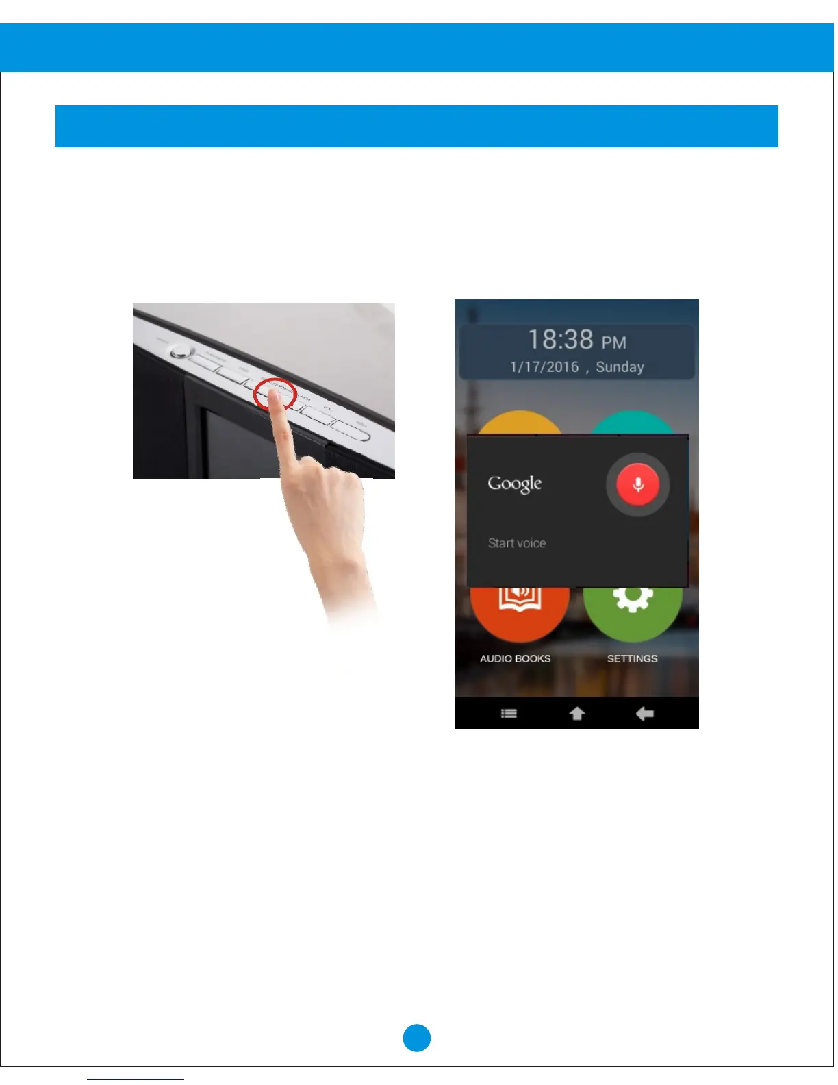 1. Press and hold the "Voice command/Alarm" button at the top of the device.