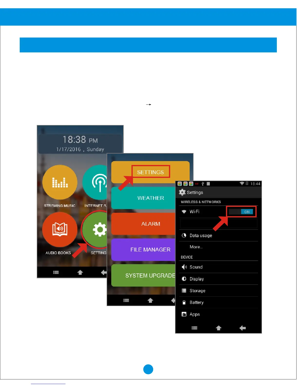 1. From Home screen, Touch "SETTINGS" "SETTINGS".
