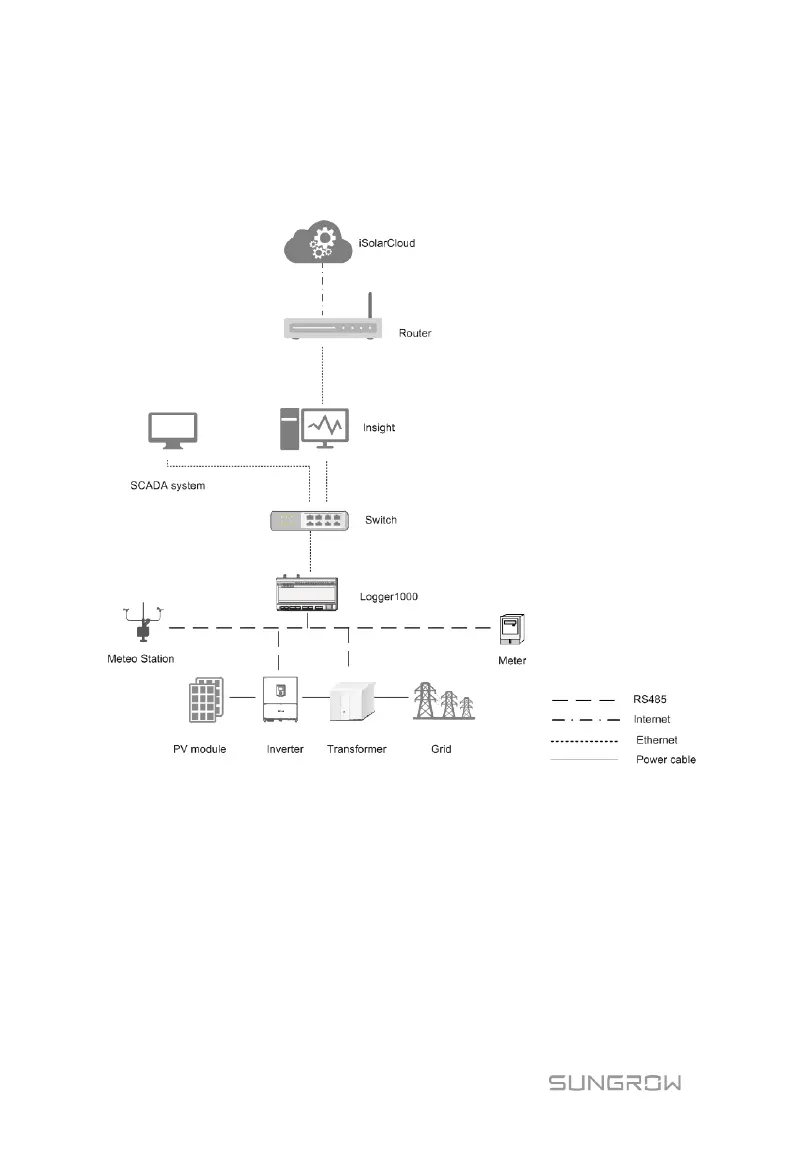 As shown in the figure below, the Logger1000 can be connected to iSolarCloud via a