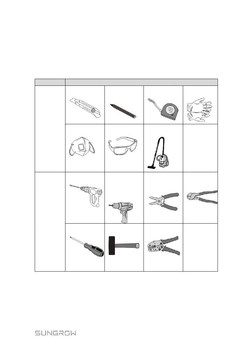Installation tools include but are not limited to the following recommended ones. If