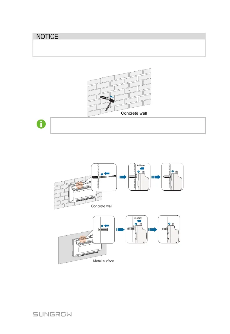 on the concrete wall or metal surface via the wall-mounting holes on the