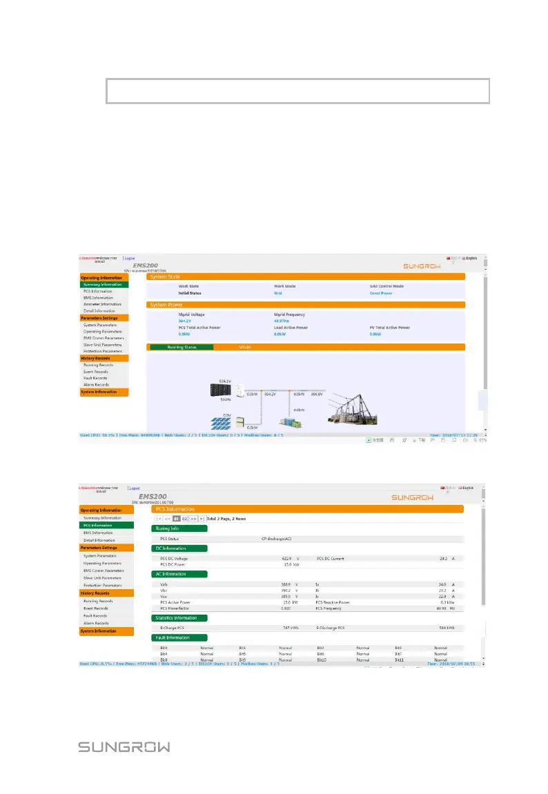 "Summary Information", "PCS Information", "BMS Information", and "Detail