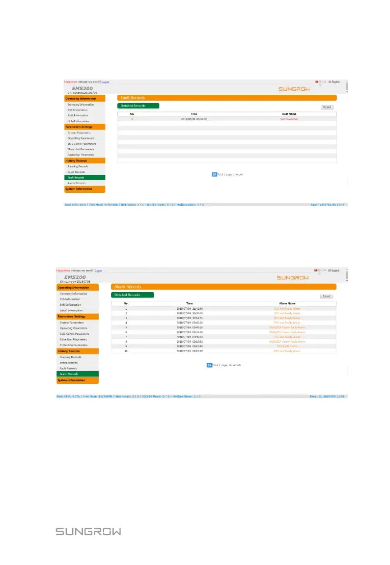 The Alarm Records include a maximum of 10,000 history records. When alarms