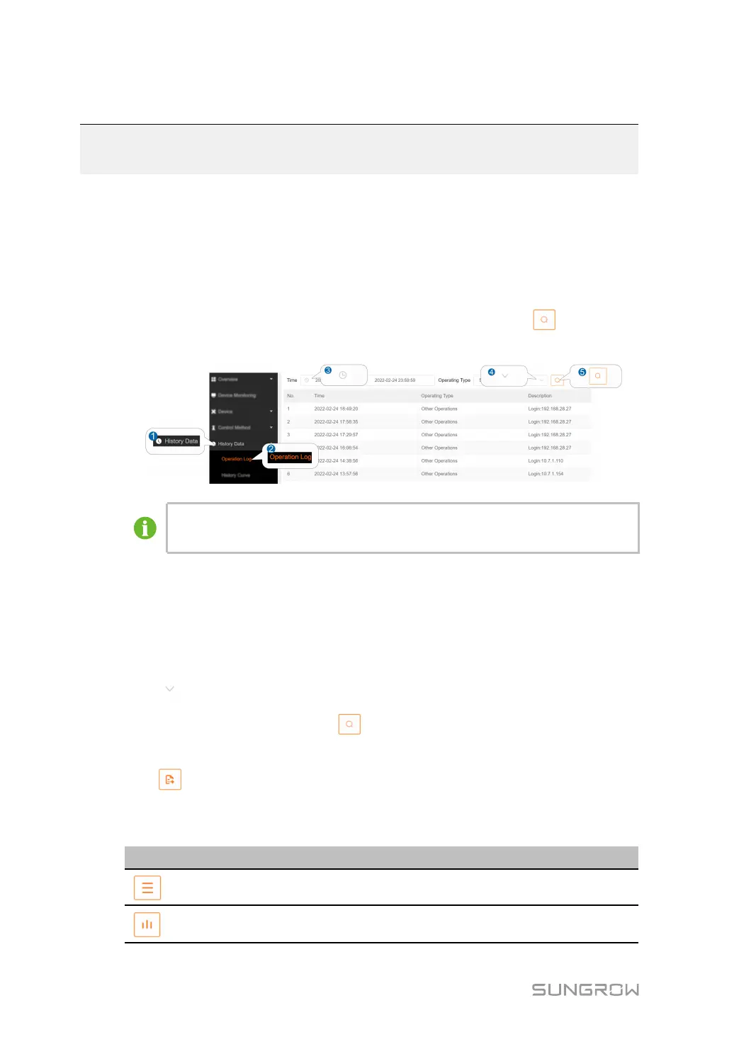 step 1 Click HHiissttoorryy DDaattaa→→OOppeerraattiioonn LLoogg to enter the corresponding interface.