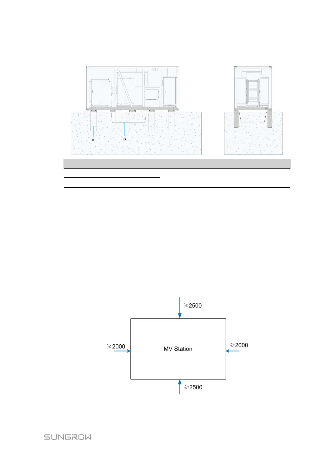 On site, MV Station works together with the inverter. Required clearances around MV